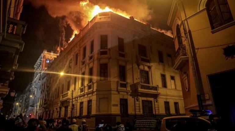 Un incendio de grandes dimensiones arrasó este jueves una casona del centro histórico de Lima apenas a unos metros de la icónica Plaza San Martín, epicentro de la gran manifestación antigubernamental en la capital peruana.