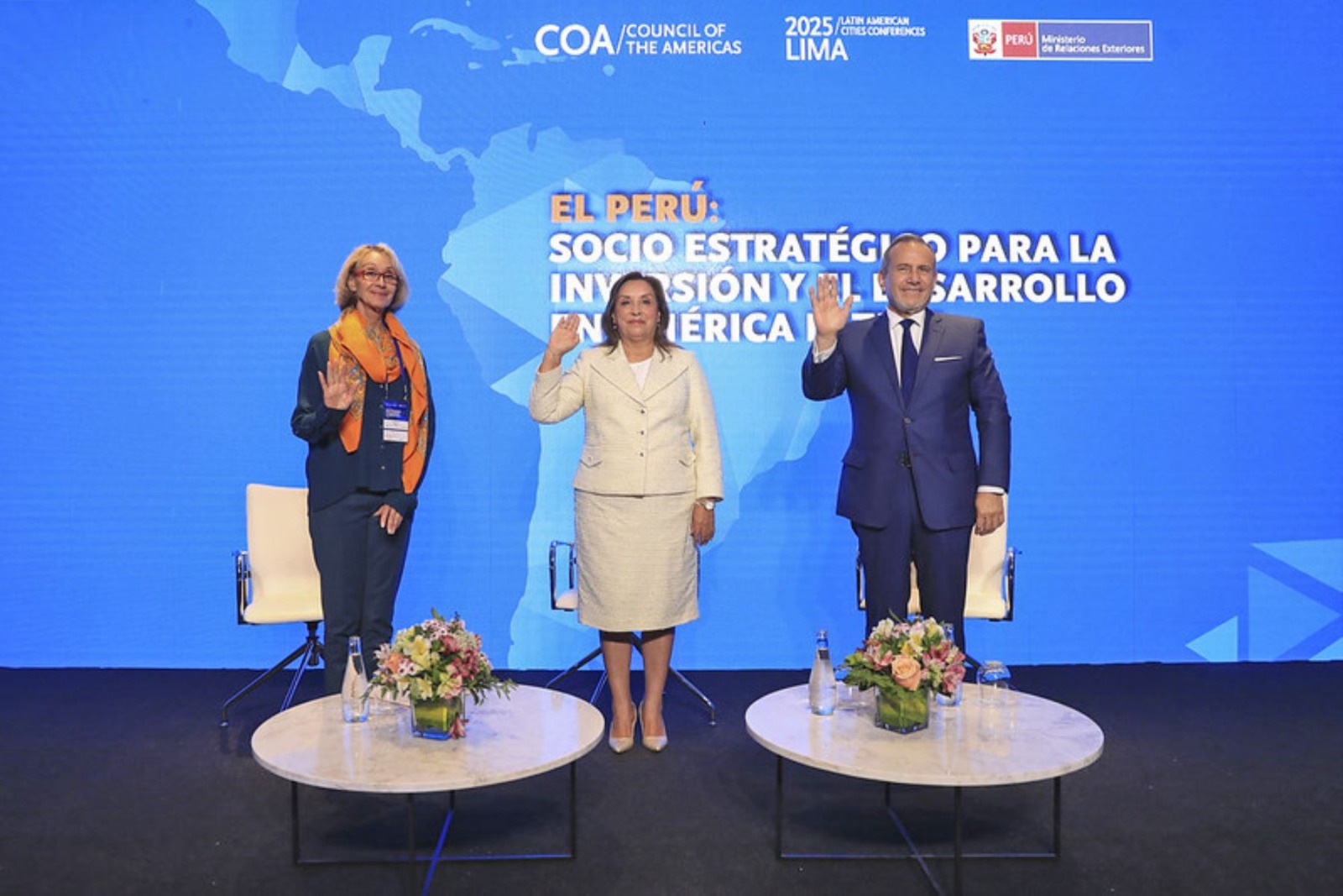 La presidenta de la República, Dina Boluart, invitó a empresarios a seguir confiando en el Perú y seguir invirtiendo, durante una actividad del Society Council of the Americas, organización empresarial de los Estados Unidos.